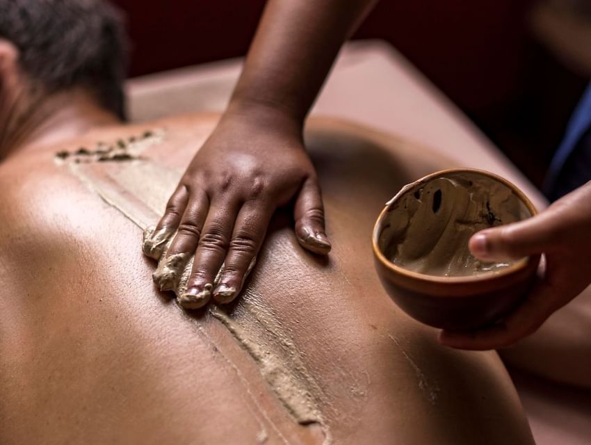 Masaje realizado con nuestra arcilla volcánica que con sus propiedades desintoxicantes y anti inflamatorias ayudan